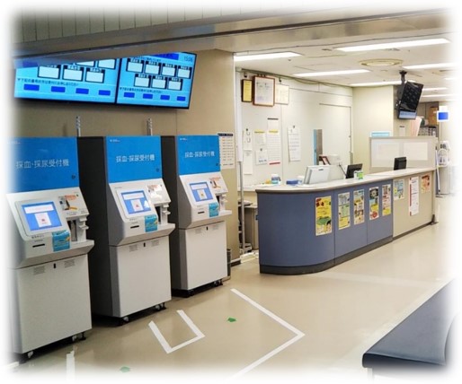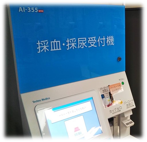 採血・採尿受付機にて受付を行います。