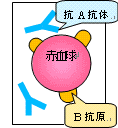 赤血球上にB抗原を持ち、自分が持っていないA抗原に反応する抗A抗体を持っています。